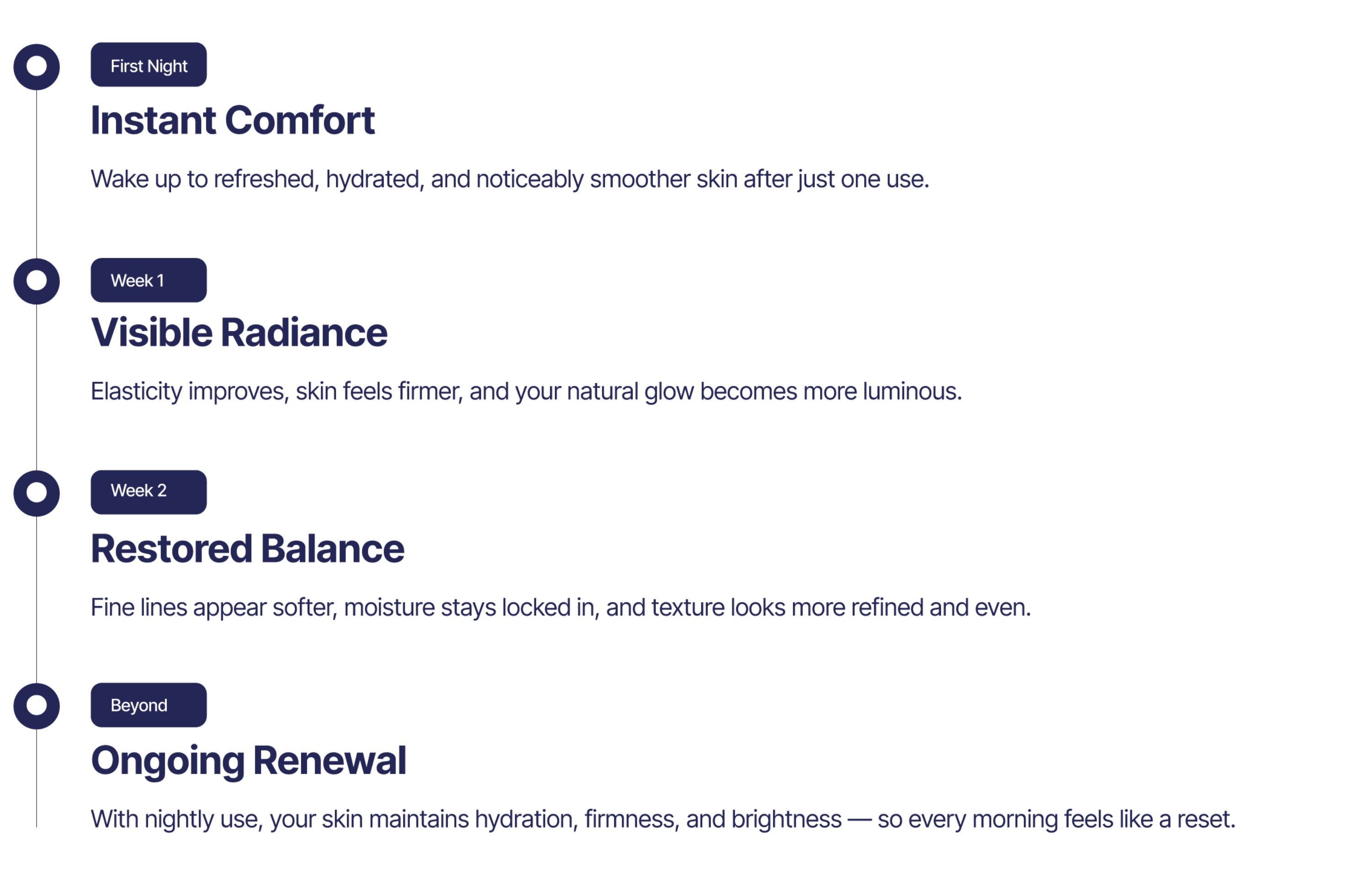 Wake up to skin that feels firmer, brighter, and deeply hydrated. Yuri’s innovative overnight formula restores elasticity, smooths fine lines, and locks in long-lasting moisture while you sleep.